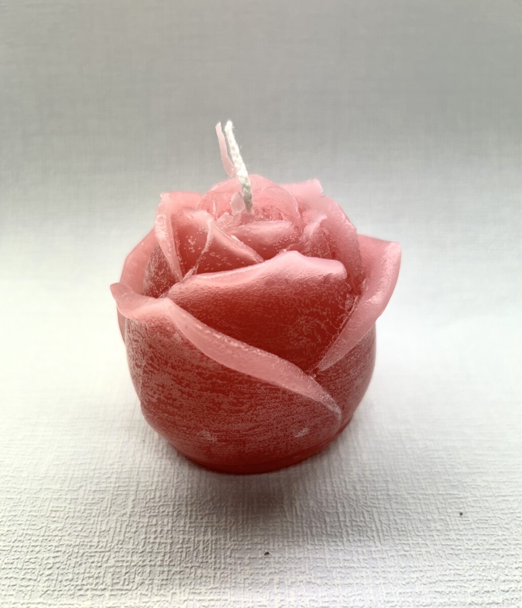 Vaaleanpunainen käsintehty ruusukynttilä – ajaton ja tunnelmallinen. Kauniisti muotoiltu pinta muistuttaa aidon ruusun terälehtiä, ja kynttilän pehmeä valo tuo lämpöä ja rauhaa ympärilleen. Ruusukynttilä sopii täydellisesti luomaan tunnelmaa arjen pieniin hetkiin, rentouttaviin iltoihin tai juhlien kattauksiin. Se toimii myös kauniina ja ajatuksellisena lahjana ruusujen, kynttilöiden ja käsityön ystävälle.