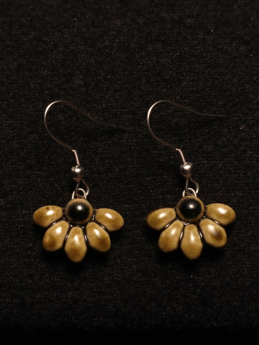 Uniikit vihreän väriset puolikukka korvakorut mustilla yksityiskohdilla on valmistettu käsin keramiikasta. Kauniit keramiikkariipukset on muovattu, lasitettu ja poltettu Porin pieni kynttilä- ja savipajalla. Korvakorujen riipuksen leveys on noin 1,8 cm, ja ne sopivat hyvin arkeen tai kauniiksi yksityiskohdaksi juhlaan. Koukut on valmistettu AISI 304 -laadun ruostumattomasta teräksestä, eli tutummin kirurginteräksestä – ihoystävällisempi ja kestävä valinta myös herkemmille korville. Puolikukka korusarjaan kuuluu korvakorujen lisäksi yhteensopivat riipukset.