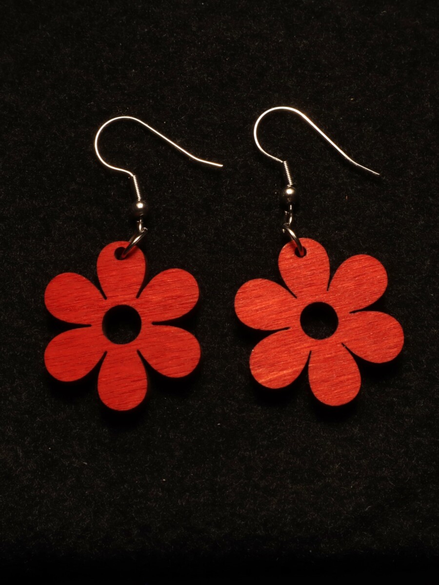 Kukkakorvakorut on leikattu ohuesta punaiseksi maalatusta vanerista, ja viimeistelty ruostumattomilla teräskoukuilla. Näyttävät mutta kevyet kukkakorvakorut tuovat iloa ja väriä asuusi! Ajattomat ja tyylikkäät korvakorut monella eri värivaihtoehdolla.